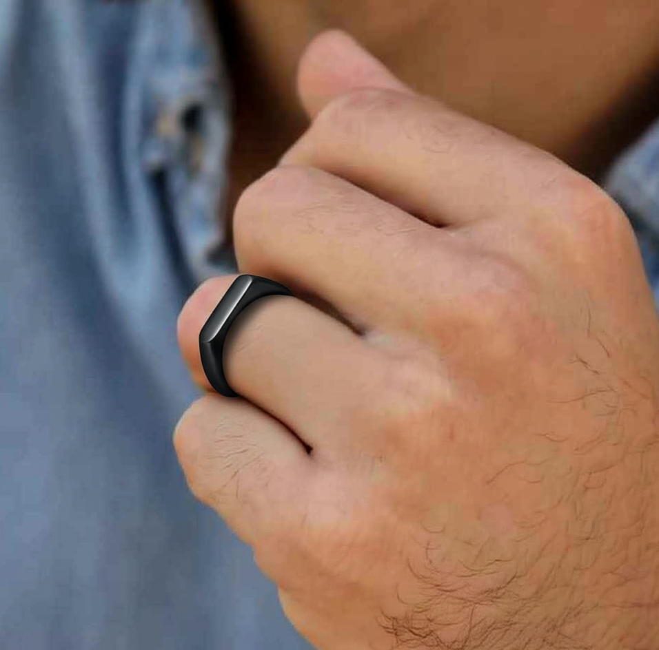 Minimal in form, bold in presence — the Blackstone Seal is a contemporary signet ring defined by its matte black finish and striking rectangular face. Designed for those who appreciate refined simplicity, it speaks volumes through clean lines and subtle detail.